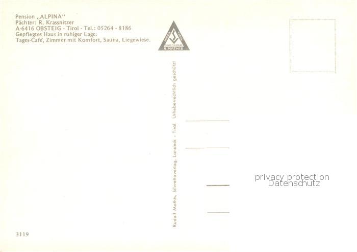 73764897 Obsteig Tirol AT Pension Alpina Murmeltier postalisch nicht gelaufen Erhaltung siehe scans [LiesaD40] KatCode: 11390334070213