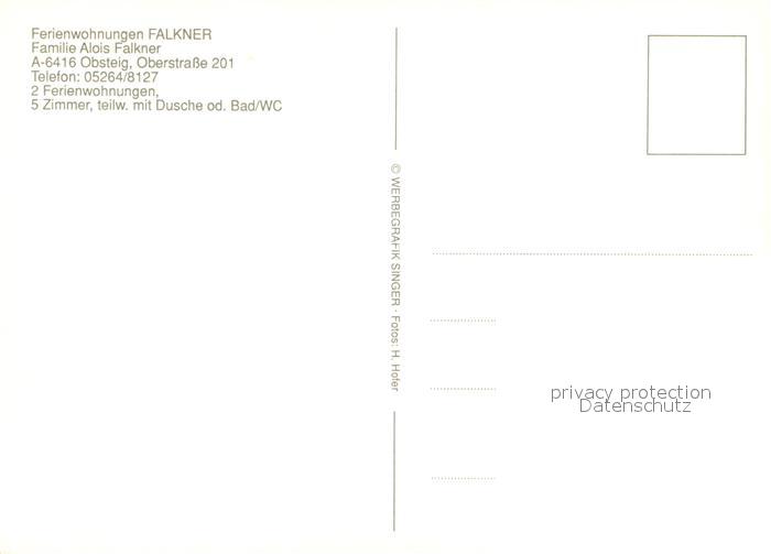 73244507 Obsteig Tirol Ferienwohnungen Falkner Alpenblick postalisch nicht gelaufen Erhaltung siehe scans [FriedD77] KatCode: 11390334070213