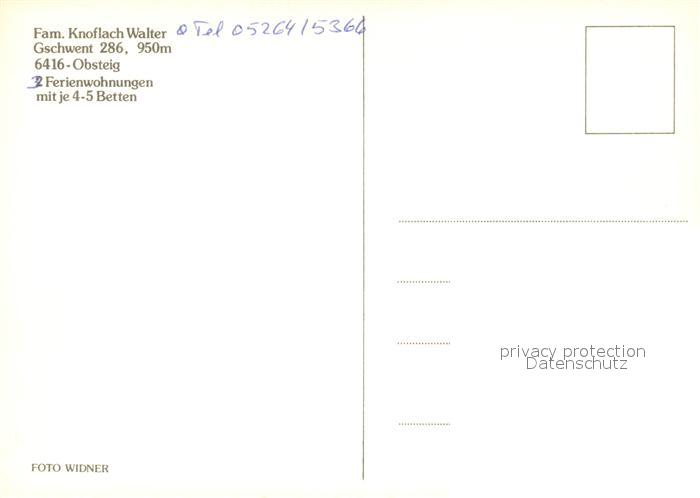73064676 Obsteig Tirol Ferienwohnungen Kuh Landschaftspanorama Alpen postalisch nicht gelaufen Erhaltung siehe scans [FriedD77] KatCode: 11390334070213