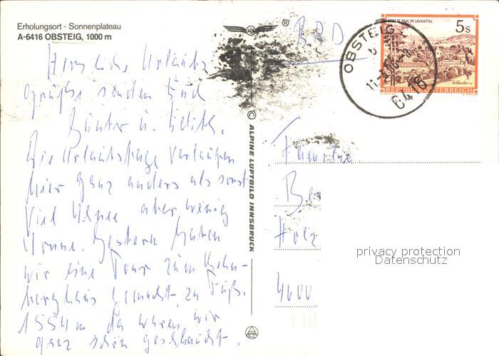 72492200 alte Postkarte Obsteig Tirol Fliegeraufnahme postalisch gelaufen Erhaltung siehe scans KatCode: 11390334070213