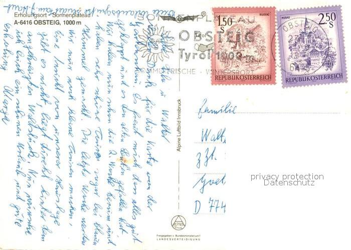 73161359 alte Postkarte Obsteig Tirol Fliegeraufnahme Mooswald postalisch gelaufen Erhaltung siehe scans [KathaD81] KatCode: 11390334070213
