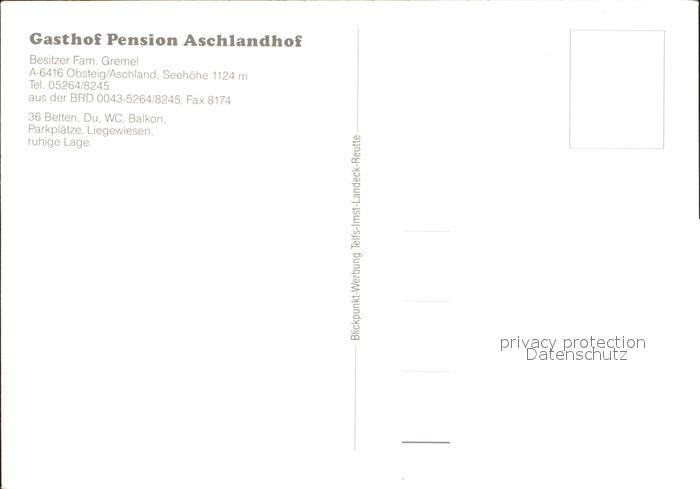 72241880 Obsteig Tirol Gasthof Pension Aschlandhof postalisch nicht gelaufen Erhaltung siehe scans KatCode: 11390334070213