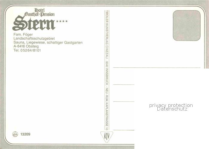 72847672 Obsteig Tirol Hotel Gasthaus Pension Stern postalisch nicht gelaufen Erhaltung siehe scans [LiesaD40] KatCode: 11390334070213