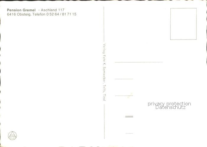 42923840 Obsteig Tirol Pension Gremel Gaststube Kapelle postalisch nicht gelaufen Erhaltung siehe scans [WerneD48] KatCode: 11390334070213