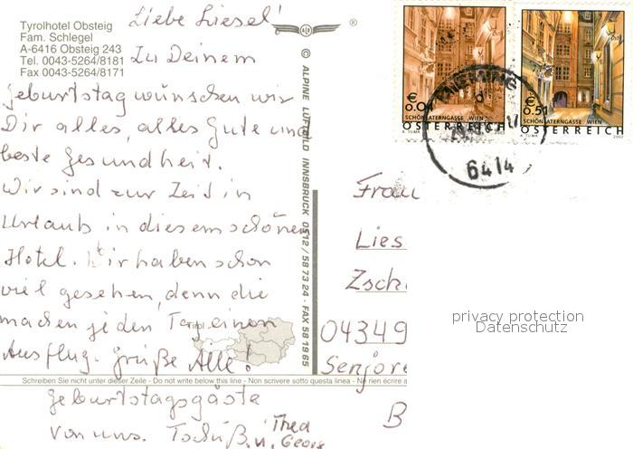 73339320 alte Postkarte Obsteig Tirol Tyrolhotel Obsteig postalisch gelaufen Erhaltung siehe scans [LiesaD40] KatCode: 11390334070213