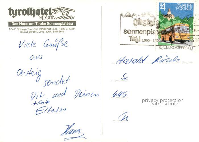 73157913 alte Postkarte Obsteig Tirol Tyrolhotel Rosen postalisch gelaufen Erhaltung siehe scans [FriedD77] KatCode: 11390334070213