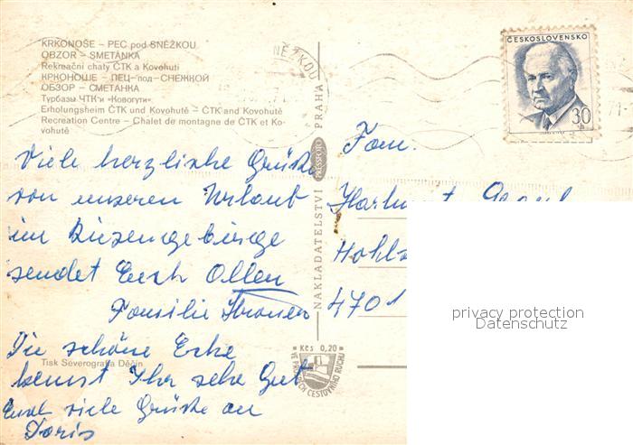 old postcard Obzor Erholungsheim CTK und Kovohute Gaststube Bar postalisch gelaufen Erhaltung siehe scans [WerneD78]