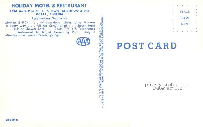 73831185 Ocala Florida USA Holiday Motel and Restaurant Pool postalisch nicht gelaufen Erhaltung siehe scans [FriedD77] KatCode: 14140110000000