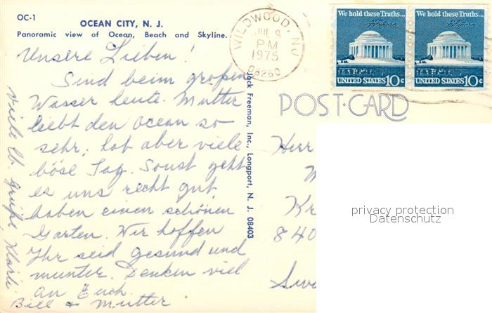 73300420 old postcard Ocean City New Jersey Panoramic view of Ocean Beach and Skyline postalisch gelaufen Erhaltung siehe scans [FriedD77] KatCode: 14140320000000