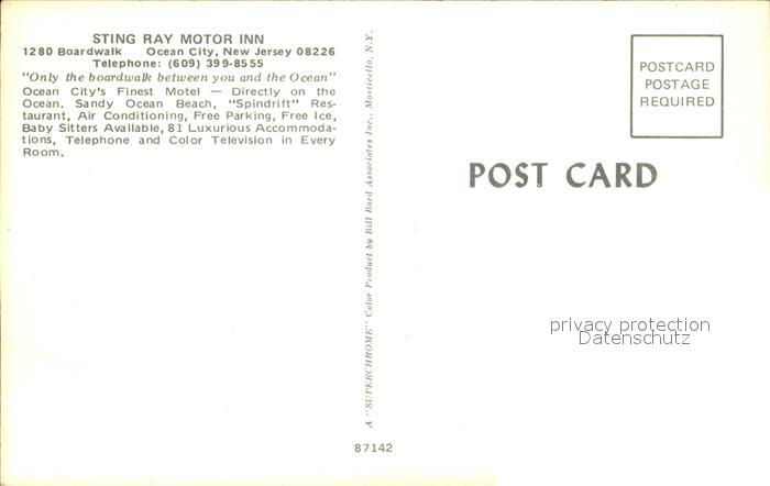 71943158 Ocean City New Jersey Sting Ray Motor Inn postalisch nicht gelaufen Erhaltung siehe scans KatCode: 14140320000000