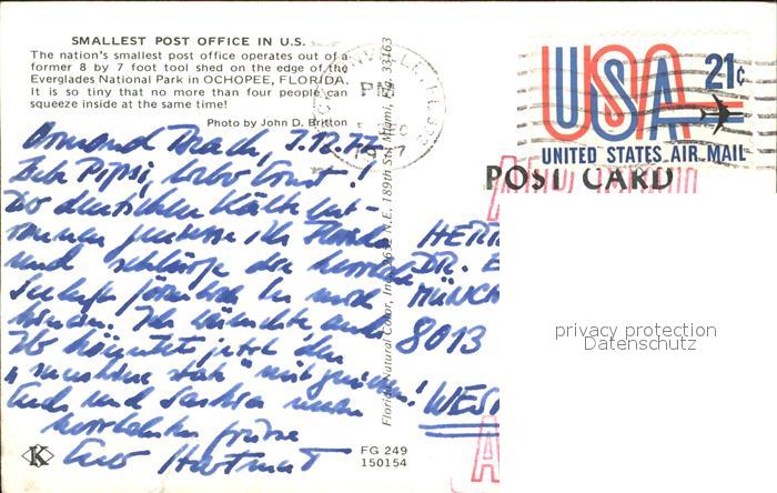 71859364 old postcard Ochopee Kleinste Postoffice in U.S. postalisch gelaufen Erhaltung siehe scans KatCode: 14140110000000
