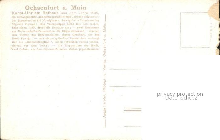 72922392 Ochsenfurt Kunstuhr am Rathaus anno 1505 postalisch nicht gelaufen Erhaltung siehe scans [FriedD46] KatCode: 11110009679170