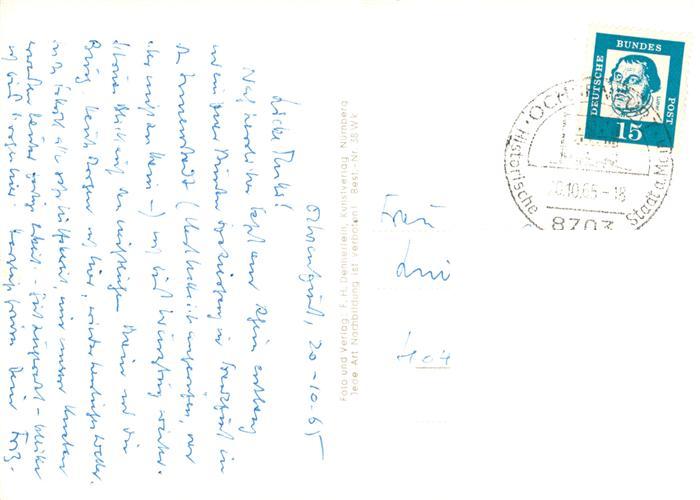 73919867 Ochsenfurt Main Marktplatz Rathaus Landratsamt Zuckerfabrik Franken Rathaustreppe Taufbecken Hauptstrasse Nikolaus und Dicker Turm Schwimmbad postalisch gelaufen Erhaltung siehe scans [FriedD77] alte Postkarte Frie Katcode 11110009679170