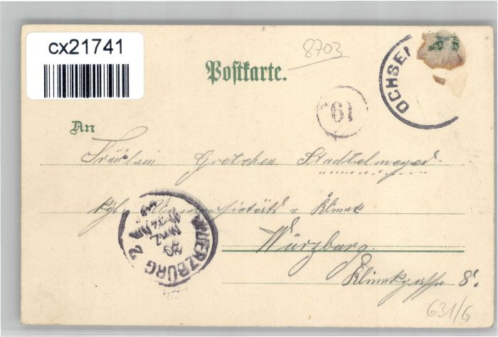 30739817 alte Postkarte Ochsenfurt Marktplatz Hauptstrasse postalisch gelaufen KatCode: 11110009679170