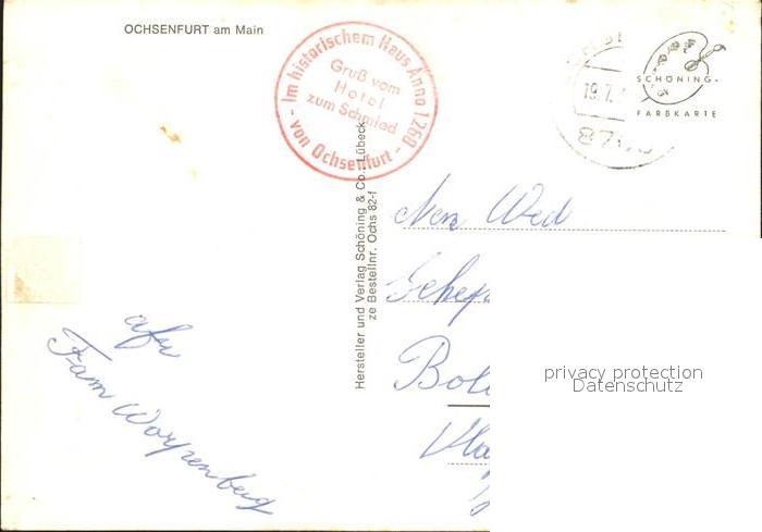 72270602 alte Postkarte Ochsenfurt Ortsstrasse mit Hotel zum Schmied Tor postalisch gelaufen Erhaltung siehe scans KatCode: 11110009679170