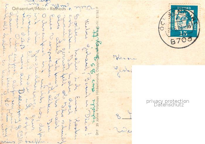 72962616 alte Postkarte Ochsenfurt Rathaus postalisch gelaufen Erhaltung siehe scans [NatalD47] KatCode: 11110009679170