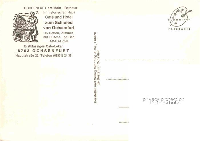 72682648 Ochsenfurt Rathaus Cafe Hotel zum Schmied von Ochsenfurt postalisch nicht gelaufen Erhaltung siehe scans [LiesaD40] KatCode: 11110009679170
