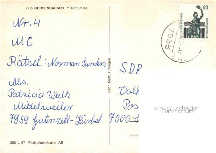 72877130 alte Postkarte Ochsenhausen Ehemalige Benediktinerabtei Rottumtal Fliegeraufnahme postalisch gelaufen Erhaltung siehe scans [FriedD77] KatCode: 11110008426087
