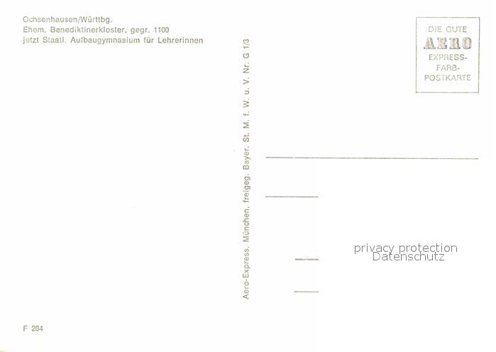 72829931 Ochsenhausen Ehemaliges Benediktinerkloster jetzt Aufbaugymnasium fuer Lehrerinnen Fliegeraufnahme postalisch nicht gelaufen Erhaltung siehe scans [FriedD77] KatCode: 11110008426087