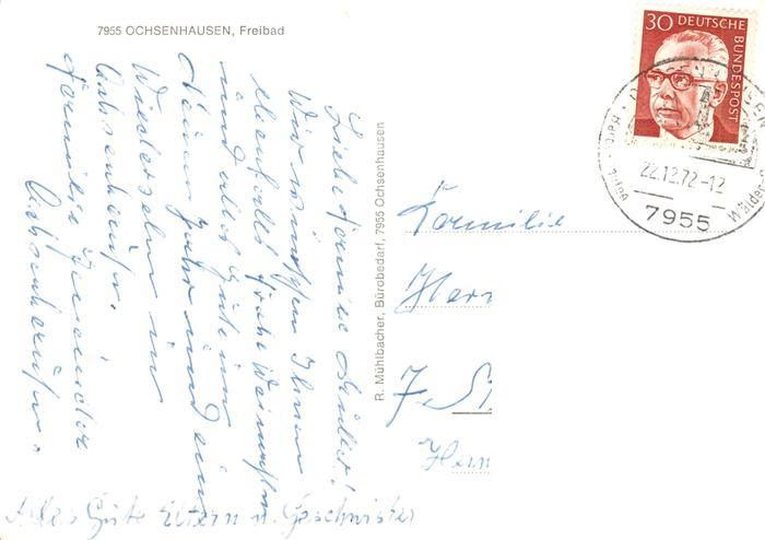 73875127 alte Postkarte Ochsenhausen Freibad postalisch gelaufen Erhaltung siehe scans [FriedD77] KatCode: 11110008426087