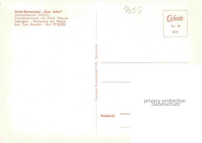 74050996 Ochsenhausen Hotel Restaurant Zum Adler postalisch nicht gelaufen Erhaltung siehe scans [WerneD78] KatCode: 11110008426087