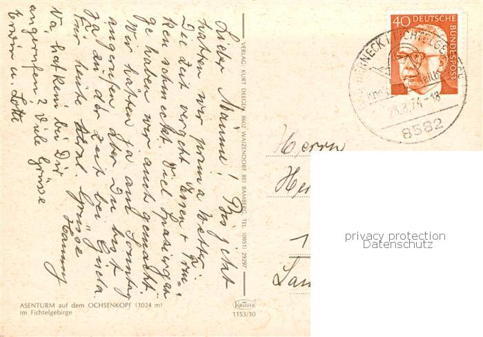73791321 alte Postkarte Ochsenkopf 1024m Fichtelgebirge Asenturm postalisch gelaufen Erhaltung siehe scans [WerneD78] KatCode: 11110009272149