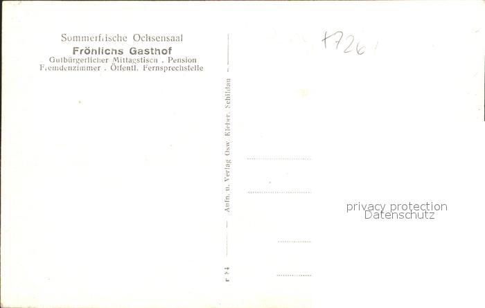 31704986 Ochsensaal Froehlichs Gasthof Schule Foersterei Kirche postalisch nicht gelaufen Erhaltung siehe scans KatCode: 11110014389080