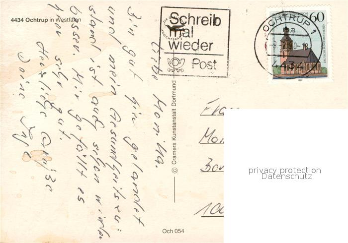 73673265 alte Postkarte Ochtrup Kirche Schloss Park Teich Windmuehle Beltman-Bau postalisch gelaufen Erhaltung siehe scans [FriedD77] KatCode: 11110005566068