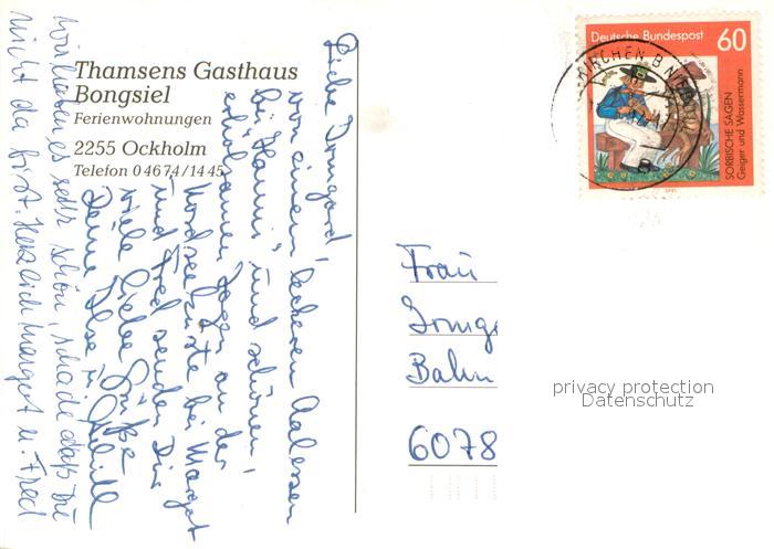 73645570 alte Postkarte Ockholm Thamsens Gasthaus Bongsiel Theke Gaststube Zimmer postalisch gelaufen Erhaltung siehe scans [WerneD78] KatCode: 11110001054093