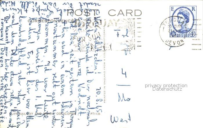 old postcard Oddicombe Cliff Railway and Beach Coast postalisch gelaufen Erhaltung siehe scans