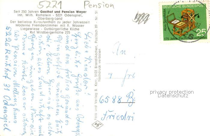 73755136 alte Postkarte Odenspiel Pension Rothstein Elbachtal postalisch gelaufen Erhaltung siehe scans [LiesaD40] KatCode: 11110005374040