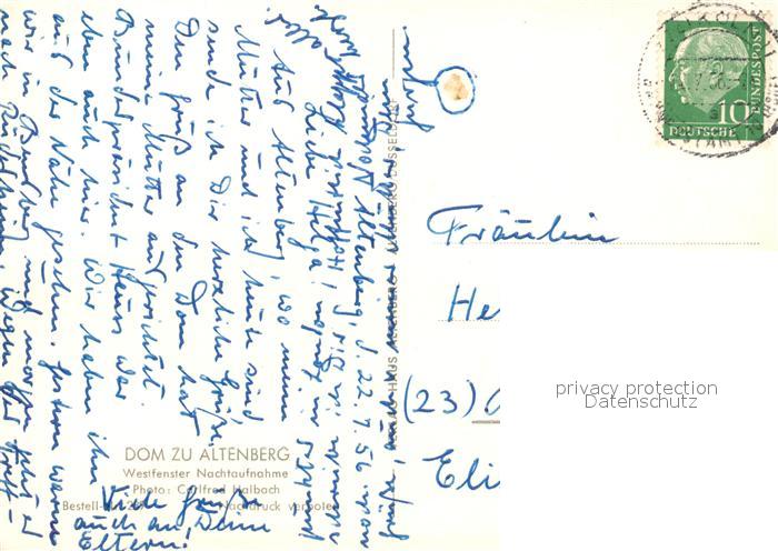 73137827 alte Postkarte Odenthal Dom zu Altenberg postalisch gelaufen Erhaltung siehe scans [NatalD47] KatCode: 11110005378020