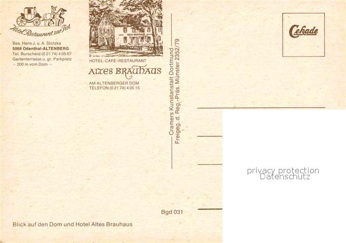 72786472 Odenthal Fliegeraufnahme Dom Hotel Altes Brauhaus postalisch nicht gelaufen Erhaltung siehe scans [AndreD76] KatCode: 11110005378020
