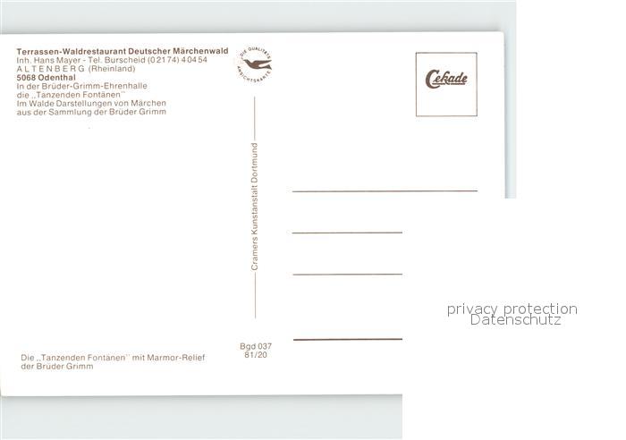 72921894 Odenthal Terrassen-Waldrestaurant Deutscher Maerchenwald postalisch nicht gelaufen Erhaltung siehe scans [NatalD47] KatCode: 11110005378020