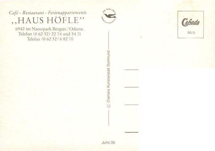 73875739 Odenwald Ferienappartements Cafe Restaurant Haus Hoefle im Naturpark Bergstrasse Zimmer Panorama postalisch nicht gelaufen Erhaltung siehe scans [FriedD77] KatCode: 11110008237045
