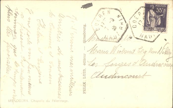 11365202 Oderen Haut Rhin Chapelle de la Pelerinage Wallfahrtskirche KatCode 11170068668247