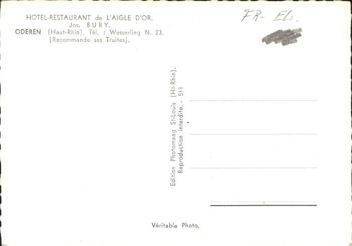 11206151 Oderen Haut Rhin Hotel Restaurant KatCode 11170068668247