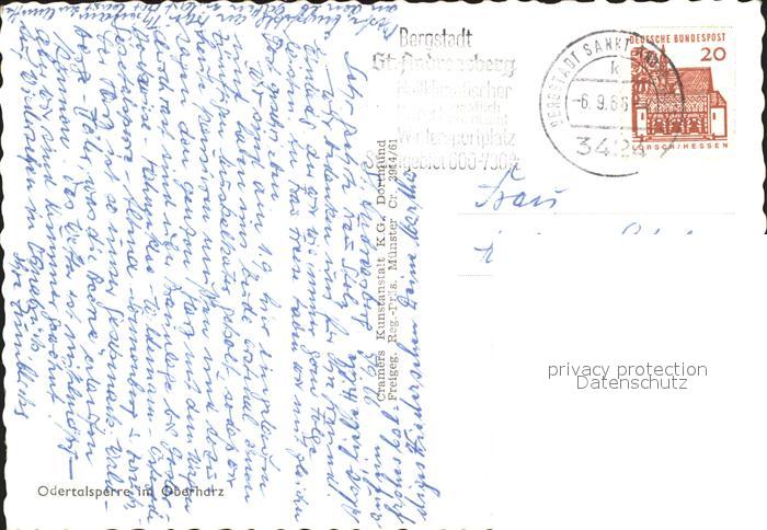 71893520 alte Postkarte Odertalsperre Fliegeraufnahme postalisch gelaufen Erhaltung siehe scans KatCode: 11110003156002