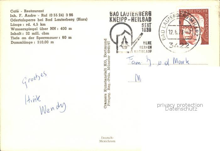 alte Postkarte Odertalsperre Fliegeraufnahme bei Bad Lauterberg &re postalisch gelaufen Erhaltung siehe scans