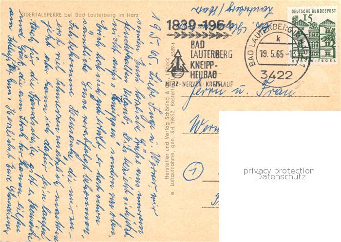 72991564 alte Postkarte Odertalsperre Fliegeraufnahme bei Bad Lauterberg postalisch gelaufen Erhaltung siehe scans [LiesaD40] KatCode: 11110003156002
