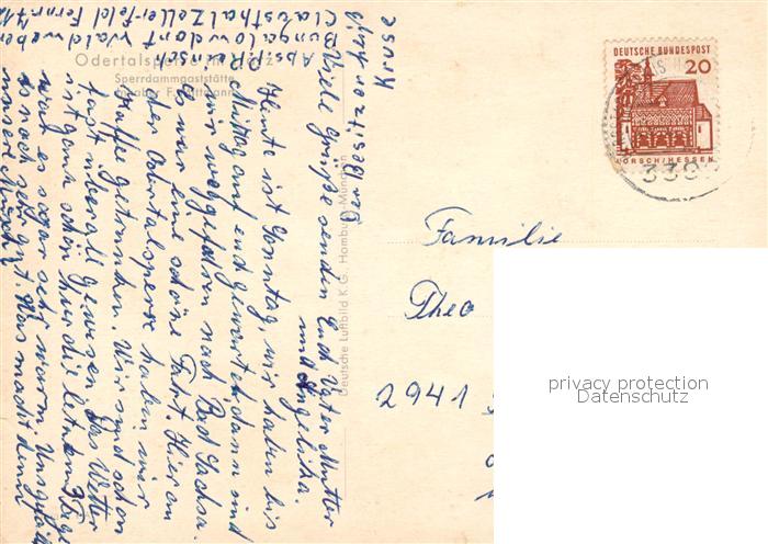73322303 alte Postkarte Odertalsperre Fliegeraufnahme postalisch gelaufen Erhaltung siehe scans [KathaD81] KatCode: 11110003156002