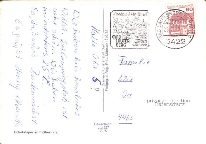 72238503 alte Postkarte Odertalsperre postalisch gelaufen Erhaltung siehe scans KatCode: 11110003156002