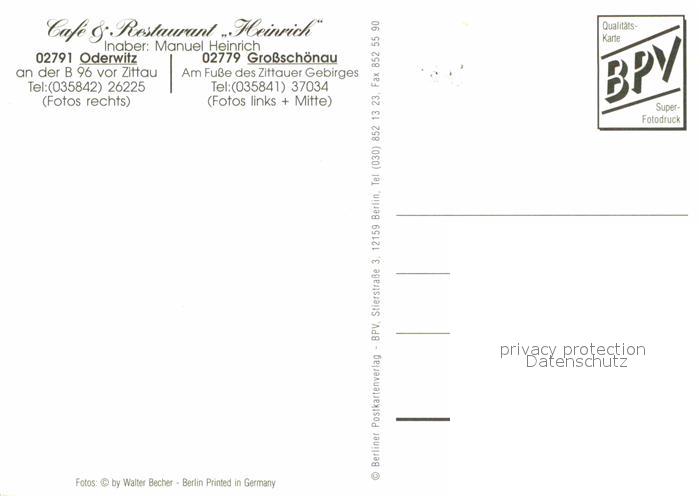 72629451 Oderwitz und Grossschoenau Cafe Restaurant Heinrich Gastraeume postalisch nicht gelaufen Erhaltung siehe scans [WerneD78] KatCode: 11110014286315