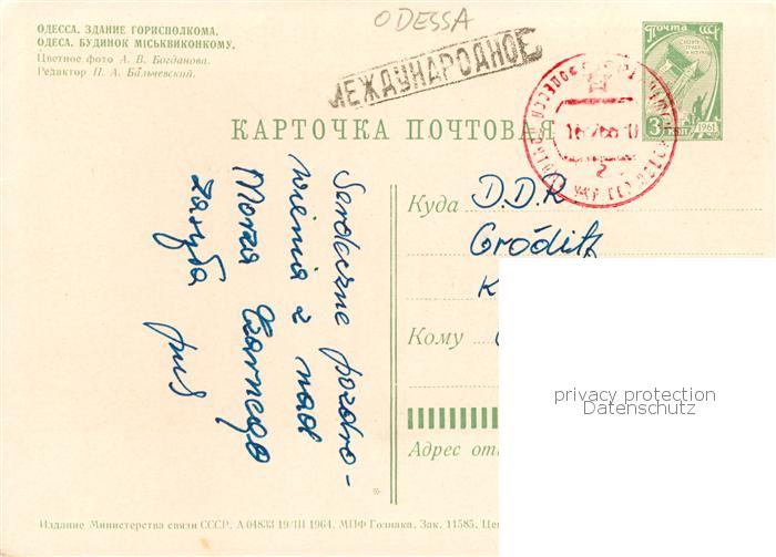 74039616 old postcard Odessa Odeca Ukraine Exekutivkomitee der Stadt postalisch gelaufen Erhaltung siehe scans [IrynaD87] KatCode: 11540
