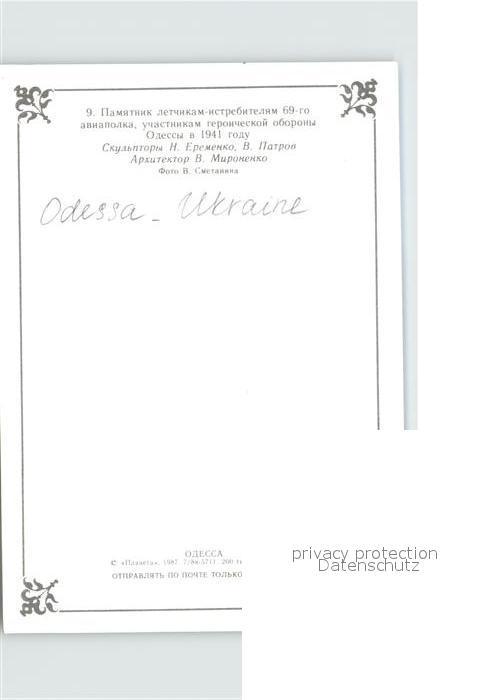 Odessa Ukraine Denkmal postalisch nicht gelaufen Erhaltung siehe scans [FriedD77 kt114box]