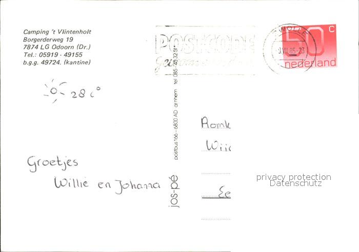 old postcard Odoorn Borger Camping t Vlintenholt postalisch gelaufen Erhaltung siehe scans