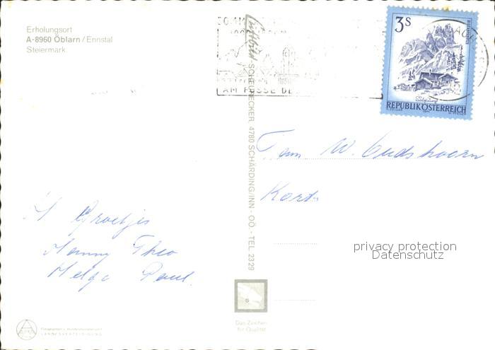 72048278 alte Postkarte oeblarn Panorama Ennstal mit Hocheck Wappen Fliegeraufnahme postalisch gelaufen Erhaltung siehe scans KatCode: 11390222061228