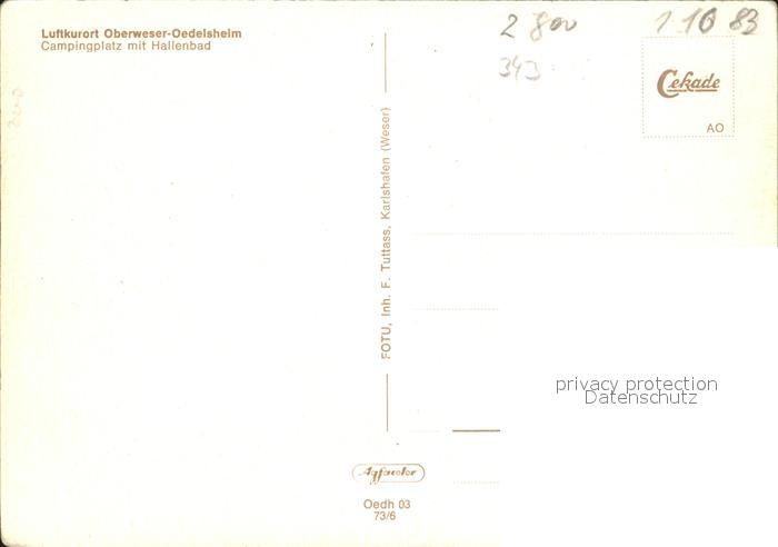 72603383 Oedelsheim Campingplatz mit Hallenbad Luftkurort postalisch nicht gelaufen Erhaltung siehe scans [FriedD77] KatCode: 11110006633021