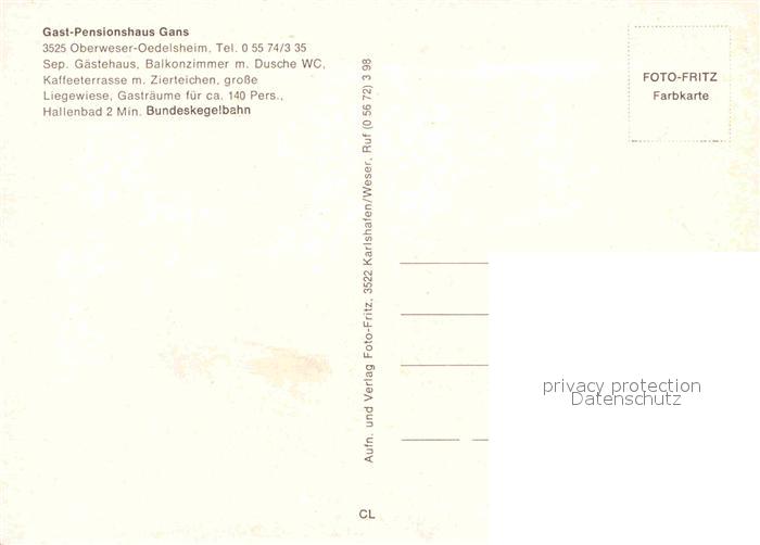 72893656 Oedelsheim Gast Pensionshaus Gans postalisch nicht gelaufen Erhaltung siehe scans [AndreD76] KatCode: 11110006633021