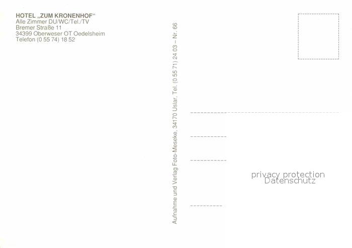 72709288 Oedelsheim Hotel Zum Kronenhof postalisch nicht gelaufen Erhaltung siehe scans [LiesaD40] KatCode: 11110006633021